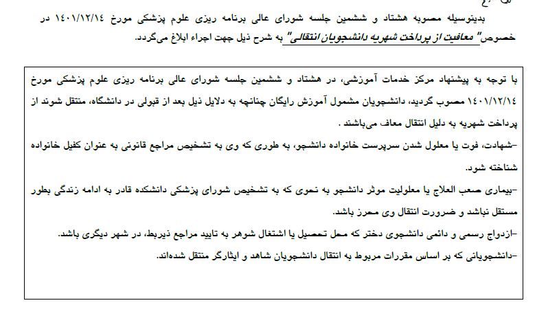 مهمانی و انتقالی دانشگاه علوم پزشکی نیم سال دوم تحصیلی 1405 - 1404